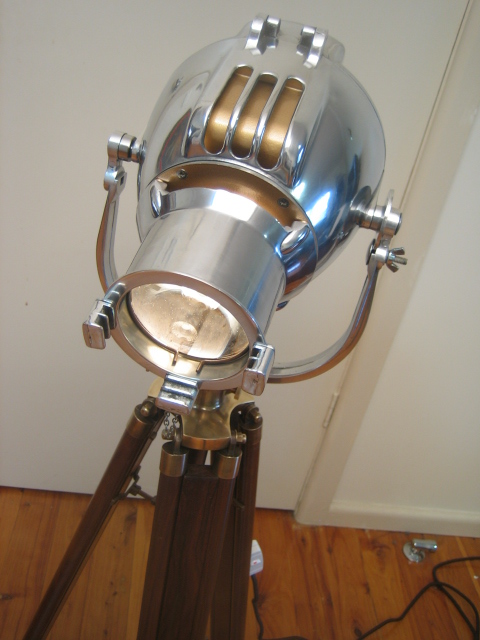 As usual, the 500watt globe and bayonet have been removed and replaced with a screw in bayonet which now takes regular household low watt globes, and an easy on/off switch installed.