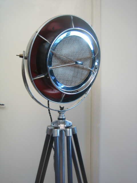 A very nice large vintage industrial factory fan heater converted into a unique floor lamp.