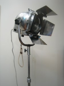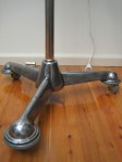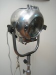 This is the first of these lamps I have come across. It had no brand labels on it so I cannot confirm it’s origin. It has a large, thick cast aluminium head with metal removable barn doors, and an original adjustable stand on castor wheels. The entire lamp has been stripped back to bare and then machine polished to a rustic vintage industrial finish. The exposed metal has been hard poly coated to prevent rust.