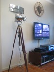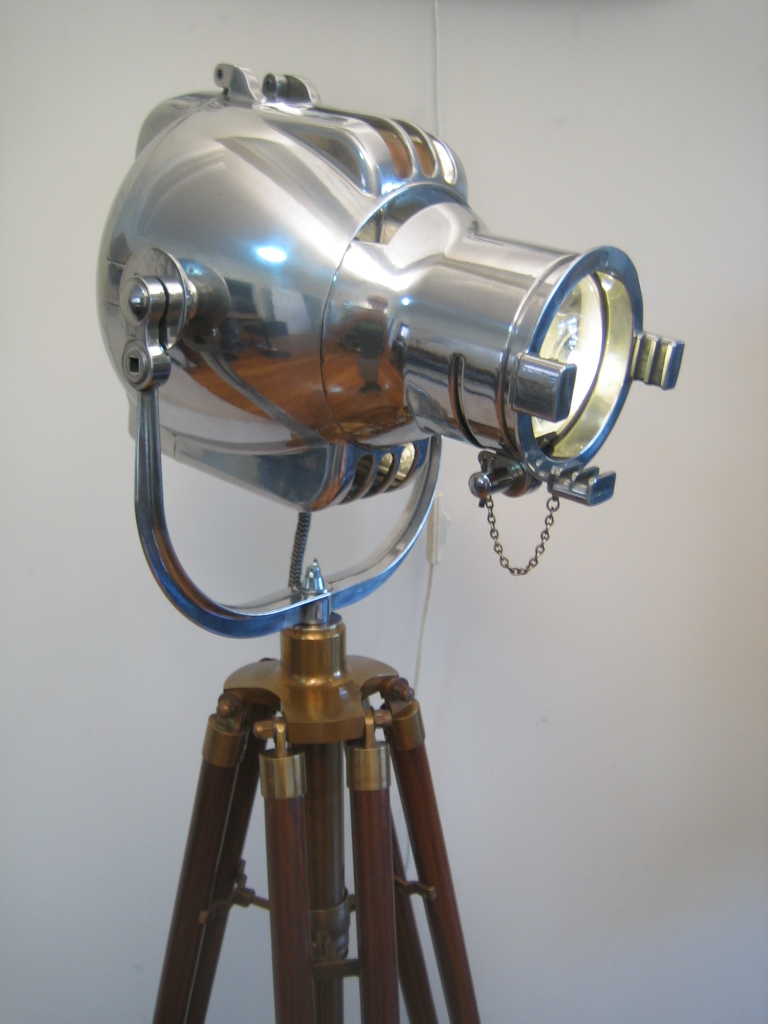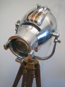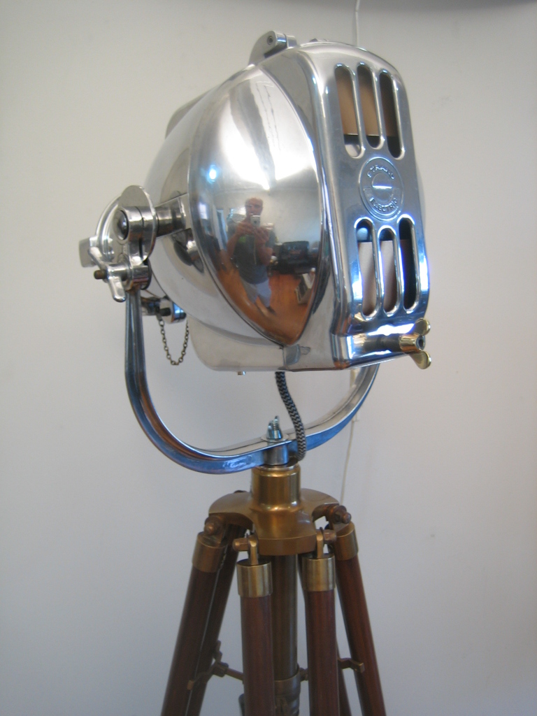 I started on this one the day before the customer emailed me to ask if I had any more Strand 23’s for sale. What great timing. This Strand was taken apart entirely and then polished piece by piece, then carefully re-assembled. A regular bayonet was installed to take household energy saver globes with a cotton weave cable and black on/off switch installed at the customers request. The inner vent covers were painted gold/copper to suit the selected tripod.