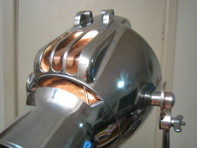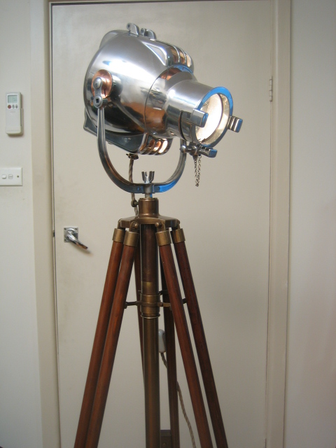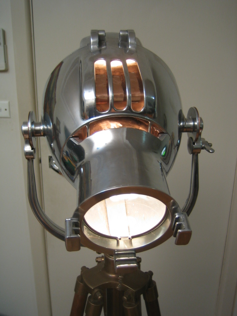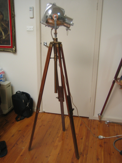 The 500watt globe has been removed and replaced with a screw in bayonet which now takes regular household energy saver globes. The AC cable has been replaced with cotton weave cable and an easy on/off switch installed. The lamp easily pops open to change the globe when required.