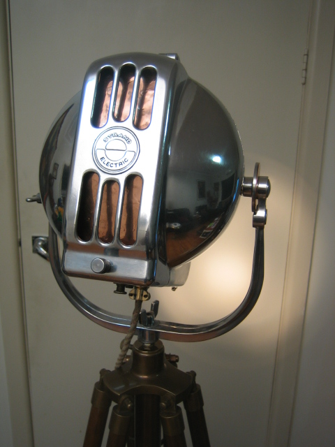 A beautiful UK Strand Pattern 123 production theatre light restored into a unique designer home/office floor/table lamp.